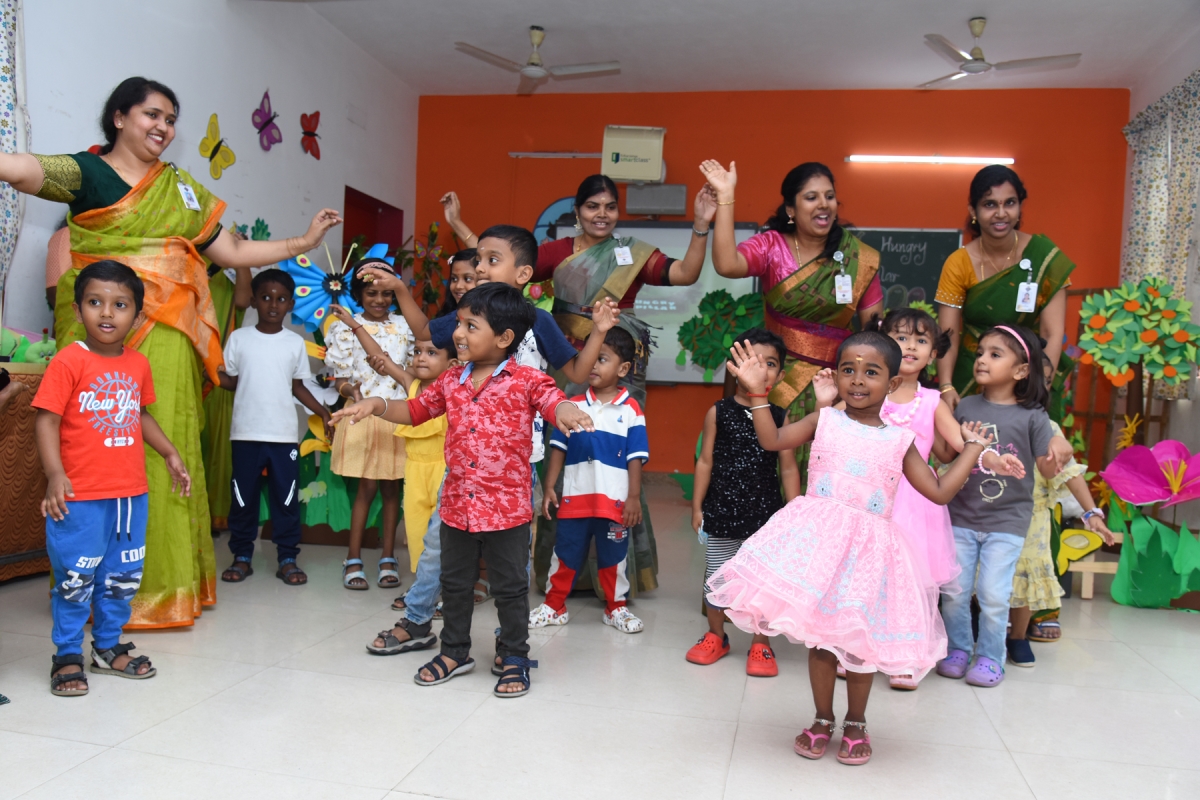 Our Motto is to create an exclusive ambience just that emphasize on experiential learning for the Tiny tots. We engage children in year round activities. We observe significant days relevant to their learning Colors Day, Shapes Day, Smiley Day, Grand Parents Day, Father’s Day, Veggies Day, Earth Day, Animals Day and so on. All festivals irrespective of religions are celebrated creating oneness and to infuse a sense of secularism from the very beginning in tender minds.
